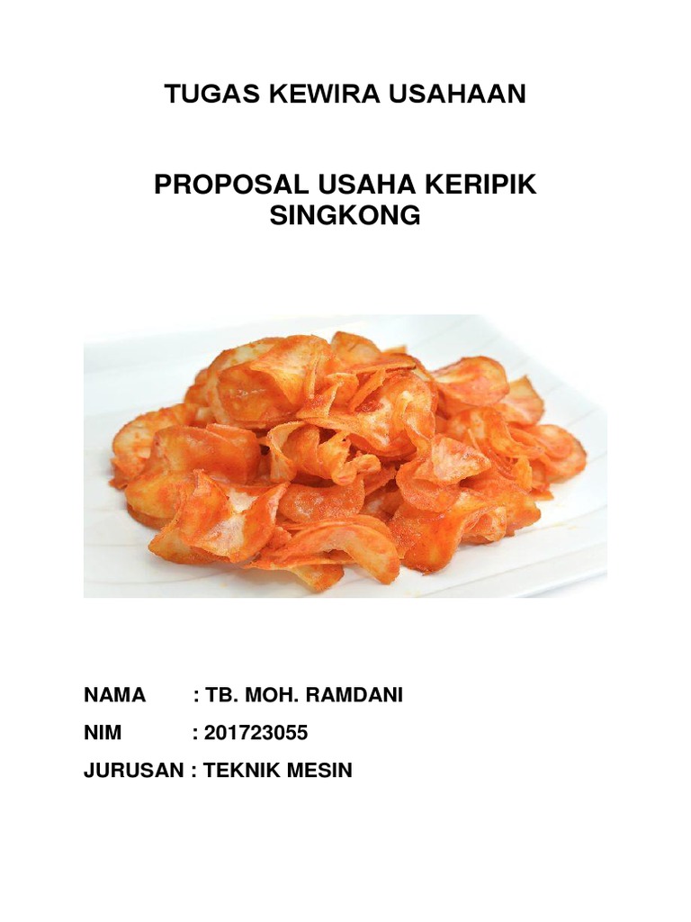 Keripik singkong merupakan salah satu jajanan yang sering dijadikan cemilan banyak orang. Keripik singkong misalnya, panganan ini sudah lama menjadi panganan kecil atau cemilan yang banyak disukai orang.bahkan keripik singkong sudah memasuki pasar ekspor untuk dijadikan sebagai makanan ringan. Temukan contoh proposal yang mudah dan dapat langsung digunakan dalam berbagai kegiatan yang akan anda laksanakan hanya di borneochannel.com. Keripik singkong sebagai salah satu makanan ringan yang disukai banyak orang merupakan makanan yang biasa dikonsumsi oleh masyarakat indonesia, hal ini menjadikan penulis tertarik untuk mempelajari bagaimana cara. Proposal lazimnya dikenal sebagai sebuah dokumen yang berisi rencana kegiatan yang terancang secara sistematis dan terperinci.